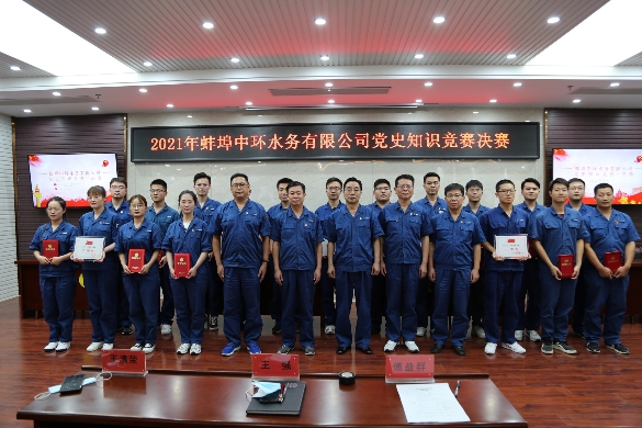 為加深廣大職工對黨的歷史、黨的知識、黨的理論和路線方針政策的認識,激發(fā)愛黨愛國熱情,堅定走中國特色社會主義道路的信心,進一步檢驗黨史學習教育成效,2021年7月23日,蚌埠中環(huán)水務工會及淮畔水蘊讀書會聯(lián)手開展了黨史知識競賽。公司黨委書記、董事長王強親臨現(xiàn)場為獲獎選手頒獎。決賽由工會主席楊道權、工會副主席王嵐擔任仲裁,紀委副書記胡偉擔任現(xiàn)場監(jiān)督。