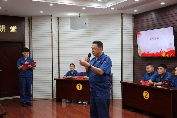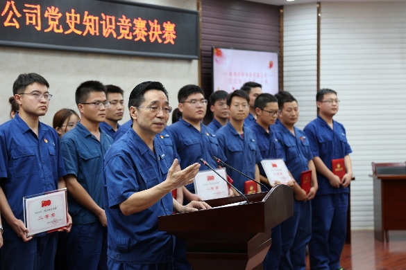 本次知識競賽由公司一市三縣13家分會及淮畔水蘊讀書會、管線所專業(yè)知識學習會共15支代表隊參賽。參賽題目分個人必答、團隊搶答、團隊必答、團隊搶答及現(xiàn)場互動等五個環(huán)節(jié),內(nèi)容豐富有趣,題目靈活新穎,集黨史、安全生產(chǎn)和公司發(fā)展于一體,現(xiàn)場氣氛緊張又活躍。經(jīng)過初賽激烈比拼,6支代表隊進入決賽。決賽現(xiàn)場,各代表隊首先發(fā)表各自參賽宣言,彰顯氣勢和決心!比賽中,必答題環(huán)節(jié)各隊不分伯仲;搶答題環(huán)節(jié)各隊拼反應比手速,比分交替上下;風險題環(huán)節(jié)各隊商對策、選決策,體現(xiàn)了團隊合作精神。各代表隊或求穩(wěn)拿分,或奮力一搏。比賽激烈不失趣味,知識靈活結(jié)合實際,檢驗了選手們對黨史知識的熟練靈活掌握,有效展示了“以賽促學、以學促用”的濃厚學習氛圍。 經(jīng)過激烈的角逐,最終工程二處分會獲得一等獎,黑虎山水廠分會和淮畔水蘊讀書會獲得二等獎,管線所分會、機關一分會及懷遠中環(huán)分會獲得三等獎。 會上,工會主席、人力資源總監(jiān)楊道權在開場比賽前給大家鼓勁加油,并在初賽中指出,學黨史是黨的事業(yè)興旺發(fā)達的需要,是企業(yè)可持續(xù)發(fā)展的需要,是促進職工學習時代楷模精神的需要。 黨委副書記、紀委書記傅益群在決賽現(xiàn)場指出,開展黨史學習教育,是公司慶黨百年系列活動的一項重要內(nèi)容,也是對黨史學習教育成效的一次檢驗,也為下一步黨史學習教育再動員再部署再推動做鋪設。學黨史、感黨恩,重溫紅色記憶,傳承紅色精神,再次激發(fā)了黨員的愛國熱情。 比賽現(xiàn)場,公司黨委書記、董事長王強發(fā)表講話。他強調(diào),參賽選手正是“恰同學少年,風華正茂”的大好年紀。學黨史增黨性,才能學深悟透,進一步激發(fā)黨員在實際工作中的積極性和主動性。傳承黨的百年光輝史基因,鑄牢中華民族共同體意識,真正做到學以致用謀發(fā)展,堅定理想和信念。最后,董事長結(jié)合鳳陽縣小崗村第一書記沈浩的事跡將“勿忘昨天的苦難輝煌、無愧今天的歷史擔當、不負明天的偉大夢想”做了生動解讀。
