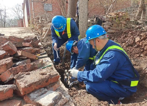 3月21日,蚌埠中環(huán)黨委接到中環(huán)水務(wù)黨委緊急指令:立即組織技術(shù)力量,馳援嵩縣石場(chǎng)村,開(kāi)展聽(tīng)漏搶修盡快恢復(fù)供水。公司黨委高度重視,黨委書(shū)記、董事長(zhǎng)王強(qiáng)親自部署,分管領(lǐng)導(dǎo)張自強(qiáng)直接指揮,迅速組織以管線所技術(shù)人員成斌、羅輝、丁開(kāi)發(fā)、許向東組成的供水搶修突擊隊(duì),從疫情防控、搶修方案等多方面均進(jìn)行了周密安排,確保人員、工作“雙安全”??紤]到山區(qū)地勢(shì)偏遠(yuǎn)、物資缺乏,搶修突擊隊(duì)備足檢漏專用設(shè)備,搶修工具,以及所有能夠想到的材料配件,確保專業(yè)高效規(guī)范完成任務(wù)。 疫情防控不松懈,逆行馳援保供水 3月22日上午,蚌埠中環(huán)供水搶修突擊隊(duì)帶著“抗疫情、保供水”的使命從蚌埠出發(fā)奔赴嵩縣。途中,他們克服因疫情原因不得中途停留等諸多不便,持續(xù)駕車七個(gè)多小時(shí)到達(dá)目的地,搶修突擊隊(duì)積極配合當(dāng)?shù)匾咔榉揽匾螅_保各項(xiàng)檢測(cè)正常后,立即開(kāi)展工作。經(jīng)中國(guó)節(jié)能派駐干部、村第一書(shū)記李彤輝介紹,石場(chǎng)村地理環(huán)境特殊,地勢(shì)落差高達(dá)百米,七個(gè)自然村最遠(yuǎn)相距15公里,坡度陡峭險(xiǎn)峻,加之需要重點(diǎn)檢漏和維修的下石板溝村所處地勢(shì)最低、水壓很大,各種原因?qū)е麓逯卸鄶?shù)用戶無(wú)水可用。時(shí)間緊、任務(wù)重、壓力大,放下簡(jiǎn)單行李,取出管材配件,扛起專用工具,搶修突擊隊(duì)立即投入管網(wǎng)搶修工作中。在當(dāng)?shù)卮甯刹康呐浜舷?,突擊?duì)對(duì)管網(wǎng)線路、地形地貌特點(diǎn)等進(jìn)行初步摸排,根據(jù)鋪設(shè)走向、管道口徑、管網(wǎng)壓力,尋找漏損原因,制定行之有效的維修方案,第一天就在已停水許久的下石板溝村找到兩個(gè)隱藏很深的大漏點(diǎn)、更換一處損壞的減壓閥,恢復(fù)供水。