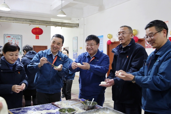 職工們?cè)缭绲貋?lái)到活動(dòng)現(xiàn)場(chǎng),大家分工協(xié)作,各顯其能,揪面團(tuán)、搟餃子皮,圍在一起包餃子、嘮家常,活動(dòng)現(xiàn)場(chǎng)不時(shí)傳來(lái)大家歡快的笑聲,忙得不亦樂乎。 公司黨委書記、董事長(zhǎng)吳勇以及部分領(lǐng)導(dǎo)班子成員也來(lái)到活動(dòng)現(xiàn)場(chǎng),和職工們一同感受著濃濃的新年氣息,每個(gè)人臉上都洋溢著燦爛的笑容。