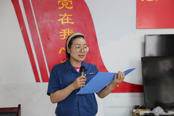 講故事環(huán)節(jié),楊麗娜向大家介紹了端午節(jié)的由來、習(xí)俗、愿景等;誦經(jīng)典環(huán)節(jié),丁奕銘朗誦的《贊頌二十大》聲音渾厚、氣勢洪亮,將整場道德講堂的氣氛推向高潮。