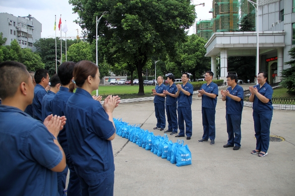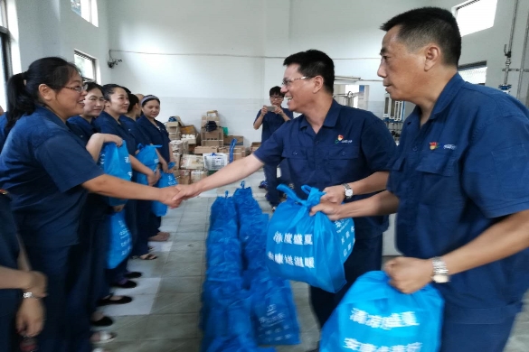 高溫慰問活動(dòng)中,黨政領(lǐng)導(dǎo)班子每到一處,首先向大家道一聲辛苦,向高溫期間堅(jiān)守一線的員工表示衷心的感謝,囑托大家要安全作業(yè),合理安排戶外工作時(shí)間,避免長(zhǎng)時(shí)間的露天工作。隨后,領(lǐng)導(dǎo)班子成員將毛巾、清涼飲料等防暑降溫用品送到員工手中,把公司的關(guān)懷送到了每位員工的心坎里,使廣大員工在炎炎夏日感受到絲絲清涼。
