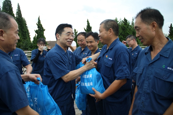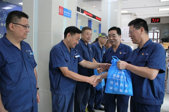 公司領(lǐng)導(dǎo)在高溫酷暑之際慰問奮戰(zhàn)一線、堅(jiān)守崗位的員工,是蚌埠中環(huán)水務(wù)一直以來(lái)的優(yōu)良傳統(tǒng)。城市供水安全的有序運(yùn)行離不開公司各個(gè)崗位的干部員工,特別是一線工作人員的艱辛付出與無(wú)私奉獻(xiàn)。為全面做好防暑降溫工作,黨政領(lǐng)導(dǎo)班子成員還分別前往各工程部門施工現(xiàn)場(chǎng)及周邊鄉(xiāng)鎮(zhèn)的供水公司、生產(chǎn)水廠,向冒著高溫辛勤工作的干部員工表示敬意和慰問。7月30日,黨委委員、常務(wù)副總經(jīng)理吳勇率隊(duì)慰問了工程二處淮畔人家安置房工地、鯤鵬公司御水龍廷小區(qū)工地、政通公司龍河新城工地、工程一處坦克學(xué)院蚌埠基地“三供一改”施工現(xiàn)場(chǎng)的一線施工人員;7月31日,黨委委員、總工程師蔣林率隊(duì)慰問了五河晶源水務(wù)、沫河口水廠的一線員工;8月2日,黨委副書記、紀(jì)委書記傅益群率隊(duì)慰問了固鎮(zhèn)中環(huán)水務(wù)、固鎮(zhèn)經(jīng)開區(qū)水廠的一線員工。