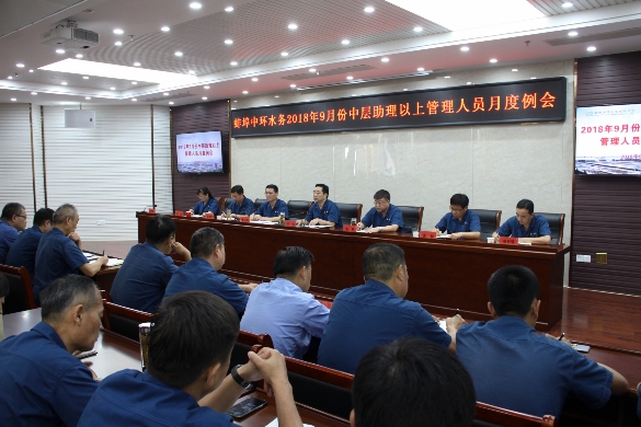 2018年9月21日下午,蚌埠中環(huán)水務(wù)有限公司在二樓綜合會議室召開2018年9月份中層助理以上管理人員月度例會,黨政領(lǐng)導班子成員、中層助理以上管理人員共100余人參加會議,黨委副書記、紀委書記傅益群主持會議。