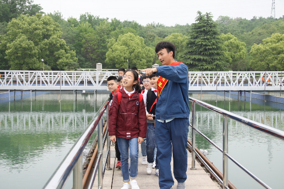 為了讓學(xué)生了解自來水的生產(chǎn)過程,培養(yǎng)學(xué)生的節(jié)水意識(shí),從而養(yǎng)成節(jié)約用水的好習(xí)慣。4月25日下午,蚌山小學(xué)的80名“小記者”走進(jìn)蚌埠中環(huán)水務(wù)有限公司黑虎山水廠,近距離參觀制水工藝流程,了解身邊的水世界,一同揭開水的謎團(tuán)。 飲水思源,我們?nèi)粘S玫淖詠硭畯暮味鴣?,又?jīng)過了怎樣的程序才流入千家萬戶?當(dāng)日14時(shí),小記者們懷揣著疑問走進(jìn)了黑虎山水廠,開始了探水之旅。在公司黨員、青年志愿者的陪同講解中,小記者們參觀了露天沉淀池、過濾池、加氯間、清水池、制水車間、加壓泵房等地,志愿者向小記者們?cè)敿?xì)解說了自來水的水處理過程,即取水、沉淀、過濾、消毒、加壓等各個(gè)自動(dòng)化生產(chǎn)流程。親眼目睹了水從渾濁變清澈的神奇過程,見證了自來水的“誕生”。 小記者們是第一次到自來水廠參觀,對(duì)制水的過程充滿了好奇,自是不會(huì)放過增長知識(shí)的好機(jī)會(huì),他們邊參觀邊記筆記,不時(shí)地向工作人員提問,“水是怎樣流進(jìn)千家萬戶的”、“是什么導(dǎo)致自來水有怪味道呢”、“自來水可以直接喝嗎”、“如何保護(hù)水資源呢”……水廠工作人員一一耐心解答,同時(shí)也不忘叮囑小記者要從我做起、節(jié)約用水,保護(hù)水資源。 小記者紛紛表示:“自來水真的來之不易,需要大家好好珍惜。今后我們一定養(yǎng)成節(jié)約用水的好習(xí)慣,不浪費(fèi)水資源,同時(shí)做節(jié)約用水的宣傳員?!?/p>
