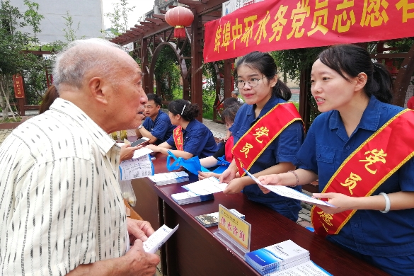 為慶祝中國(guó)共產(chǎn)黨成立98周年,深入學(xué)習(xí)宣傳貫徹習(xí)近平新時(shí)代中國(guó)特色社會(huì)主義思想和黨的十九大精神,進(jìn)一步提升黨員教育管理質(zhì)量,加強(qiáng)黨員先進(jìn)性建設(shè),增強(qiáng)基層黨組織的吸引力、感染力和凝聚力,充分發(fā)揮基層黨組織的戰(zhàn)斗堡壘與黨員的先進(jìn)模范作用。蚌埠中環(huán)水務(wù)有限公司黨委在“七一”建黨節(jié)到來之際,結(jié)合“黨員活動(dòng)日”,組織營(yíng)業(yè)所黨支部、管線所黨支部、誠(chéng)信公司黨支部、機(jī)關(guān)第一黨支部、機(jī)關(guān)第二黨支部走進(jìn)緯一社區(qū)新時(shí)代文明實(shí)踐廣場(chǎng)開展“七一”黨員志愿者進(jìn)社區(qū)便民服務(wù)活動(dòng)。 6月30日上午8:00,各黨支部書記帶領(lǐng)黨員志愿者們?cè)谏鐓^(qū)掛橫幅,設(shè)立宣傳臺(tái)及供水咨詢、維修服務(wù)臺(tái)牌,發(fā)放“優(yōu)質(zhì)供水、誠(chéng)信服務(wù)”環(huán)保袋和水費(fèi)、節(jié)水宣傳單,做好活動(dòng)簽到等。活動(dòng)現(xiàn)場(chǎng),公司黨委副書記、紀(jì)委書記傅益群,工會(huì)主席楊道權(quán)以普通黨員身份參加了活動(dòng),全體黨員統(tǒng)一著工裝,佩戴黨徽,始終保持良好的精神風(fēng)貌。 活動(dòng)中,黨員志愿者們?cè)诟髦Р繒泿ьI(lǐng)下,主動(dòng)向居民發(fā)放各種用水常識(shí)宣傳單、環(huán)保袋;耐心解答居民提出的水質(zhì)、水費(fèi)、營(yíng)銷、維修、戶表安裝、計(jì)量供水知識(shí)等與供水相關(guān)的問題;提供義務(wù)維修服務(wù),幫助用戶解決用水難題;積極向用戶宣傳節(jié)約用水小常識(shí)。志愿者們將用戶提出的問題和建議一一記錄在案,作為今后改進(jìn)供水服務(wù)的依據(jù)。