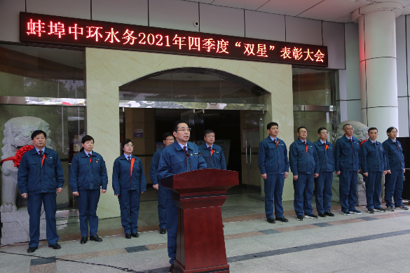 1月4日上午,蚌埠中環(huán)水務(wù)有限公司在辦公大樓門廳舉行了2021年四季度“黨員之星”、“員工之星”頒獎(jiǎng)儀式,受表彰的“雙星”及各部門負(fù)責(zé)人、部分黨員干部職工代表參加會(huì)議。會(huì)議由黨委委員、常務(wù)副總經(jīng)理王清榮主持。 上午8時(shí)整,大會(huì)首先舉行升旗儀式,鮮艷的五星紅旗、中環(huán)水務(wù)司旗以及安全生產(chǎn)旗在莊嚴(yán)的國(guó)歌聲中冉冉升起,迎接新年。新年新氣象,踏上新征程。莊嚴(yán)的國(guó)歌激勵(lì)著全體職工不忘初心,砥礪前行,堅(jiān)決履行好中環(huán)供水人新的使命和職責(zé)。 頒獎(jiǎng)儀式上,黨委副書記、總經(jīng)理徐波,黨委委員、副總經(jīng)理蔣林分別宣讀了“雙星”表彰決定,公司黨政領(lǐng)導(dǎo)班子為獲得表彰的職工進(jìn)行了頒獎(jiǎng)。 隨后,公司黨委書記、董事長(zhǎng)王強(qiáng)發(fā)表了精彩而有情懷的講話,概括地回顧了2021年所做的主要工作、取得的成就,對(duì)2022年的工作進(jìn)行了展望和部署。王強(qiáng)董事長(zhǎng)首先對(duì)獲得表彰的同志表示誠(chéng)摯的祝賀,向黨員干部職工致以節(jié)日的問候。他指出,當(dāng)前,世界正經(jīng)歷百年未有之大變局,新冠肺炎疫情全球大流行影響廣泛。作為承擔(dān)城市公共供水重任的央企,蚌埠中環(huán)在市委市政府及相關(guān)部門和股東方的堅(jiān)強(qiáng)帶領(lǐng)、指導(dǎo)和廣大黨員干部職工的頑強(qiáng)拼搏下,要勇于直面錯(cuò)綜復(fù)雜的內(nèi)外部環(huán)境,以非凡的戰(zhàn)略定力,頂壓前行,堅(jiān)持“選擇適合蚌埠中環(huán)水務(wù)發(fā)展的路徑——堅(jiān)持一張藍(lán)圖繪到底——構(gòu)筑蚌埠中環(huán)水務(wù)發(fā)展的大格局”的頂層設(shè)計(jì)理念,以深化“四個(gè)一體化”(城鄉(xiāng)、區(qū)域、供排、廠網(wǎng))為抓手,協(xié)調(diào)推進(jìn)“三步走”(精耕細(xì)作互聯(lián)互通,打造標(biāo)桿水廠,項(xiàng)目集團(tuán)化)戰(zhàn)略布局,“致廣大而盡精微”。他強(qiáng)調(diào),百年征程照初心,奮楫揚(yáng)帆啟新程。正是因?yàn)橛辛宋覀兠恳晃还┧肆瞬黄鸬姆瞰I(xiàn),蚌埠中環(huán)才取得了一個(gè)個(gè)令人矚目的成績(jī):如期實(shí)現(xiàn)馬城水廠通水目標(biāo);穩(wěn)步推進(jìn)黑虎山水廠污泥干化項(xiàng)目;續(xù)簽五河?xùn)|劉集和雙忠廟水廠托管運(yùn)營(yíng)協(xié)議;農(nóng)村飲用水全覆蓋工程和縣區(qū)城鄉(xiāng)一體化供水管道項(xiàng)目建設(shè)成果豐碩;圓滿完成太湖世界文化論壇第六屆年會(huì)、國(guó)際新材料產(chǎn)業(yè)大會(huì)的供水保障工作等等。蚌埠中環(huán)不斷推動(dòng)企業(yè)高質(zhì)量發(fā)展,凸顯了區(qū)域影響力和行業(yè)地位,增強(qiáng)了大家的幸福感、安全感、滿足感、歸屬感。 王強(qiáng)董事長(zhǎng)號(hào)召,在中國(guó)共產(chǎn)黨成立100周年的重要?dú)v史時(shí)刻和“兩個(gè)一百年”奮斗目標(biāo)的歷史交匯時(shí)期,全體黨員干部職工要堅(jiān)持用黨的十九屆六中全會(huì)精神武裝頭腦,提高政治站位,立足崗位奉獻(xiàn),擔(dān)當(dāng)使命盡職。切實(shí)增強(qiáng)“四個(gè)意識(shí)”,堅(jiān)定“四個(gè)自信”,擁護(hù)“兩個(gè)確立”,做到“兩個(gè)維護(hù)”,以高度的政治責(zé)任感和使命感面對(duì)新的機(jī)遇和挑戰(zhàn),踏上新時(shí)代趕考之路。 2022年將迎來黨的二十大召開,也是蚌埠中環(huán)建廠70周年,我們因曾經(jīng)而自豪,因未來而期待。愿每一位職工成為心愿里的自己,愿中環(huán)成為夢(mèng)想中的中環(huán),愿所有的期待都能如期而至。