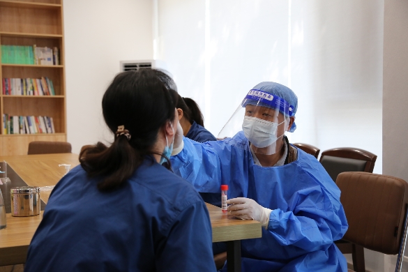 為避免在職職工人群聚集,在蚌埠中環(huán)水務(wù)積極爭(zhēng)取下,禹會(huì)區(qū)疾控中心在公司大院和黑虎山水廠單獨(dú)設(shè)置核酸采樣點(diǎn),與公司所屬緯四街道配合多次完成全員核酸檢測(cè)。