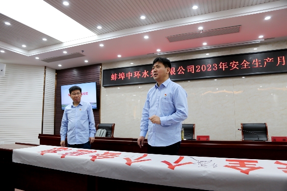 6月6日,“安全生產(chǎn)月”活動啟動儀式暨“安全生產(chǎn)大家談”專題研討交流會在二樓會議室舉行。蚌埠中環(huán)黨委副書記、總經(jīng)理徐波出席本次會議,各部門負(fù)責(zé)人、項目經(jīng)理、專兼職安全員等42人參加,會議由黨委委員、副總經(jīng)理蔣林主持。 會前,黨委副書記、總經(jīng)理徐波宣布2023年蚌埠中環(huán)水務(wù)有限公司“安全生產(chǎn)月”活動啟動正式啟動。在動員講話會上,干部職工在“人人講安全、個個會應(yīng)急”的主題橫幅上進(jìn)行鄭重地簽名,紛紛承諾,將把安全生產(chǎn)主體牢記于心,在今后的工作中積極落實安全生產(chǎn)職責(zé),為公司營造穩(wěn)定的安全生產(chǎn)環(huán)境。