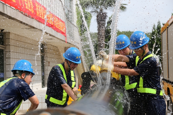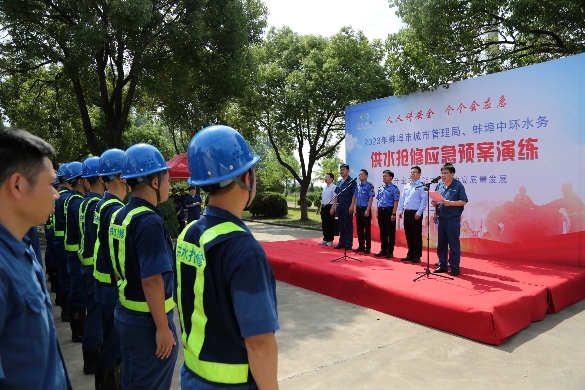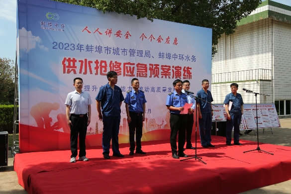 為保障蚌埠市供水管網(wǎng)的安全運行,提升管網(wǎng)搶修人員應(yīng)急處理能力,有效應(yīng)對各種供水管網(wǎng)突發(fā)事件,6月28日上午,蚌埠中環(huán)在黑虎山水廠組織開展了供水搶修應(yīng)急預(yù)案演練。