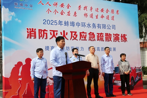 為提升全體職工的消防安全意識與應急處置能力,筑牢企業(yè)消防安全防線,4月29日,蚌埠中環(huán)開展了2025年消防疏散及滅火應急演練。黨委書記、董事長錢然參加活動并作總結(jié)講話,黨委副書記、總經(jīng)理徐波參加活動,黨委委員、副總經(jīng)理蔣林主持活動。公司班子成員參加活動。蚌投集團、蚌埠市應急管理局、禹會區(qū)應急管理局等單位領(lǐng)導受邀參加活動。