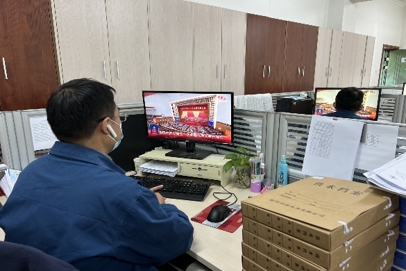 機關(guān)第一黨支部閆影: 喜迎二十大,堅守在崗位。10月16日上午10時,黨的二十大開幕會在北京人民大會堂勝利召開。工作之余我與同事一起觀看大會盛況,聆聽了習近平總書記在大會上的報告。報告是令人振奮、催人奮進的,報告內(nèi)容回應了許多人民群眾關(guān)注的民生話題,傳遞了綠色發(fā)展精神,重申了“綠水青山就是金山銀山”的理念,作為一名水質(zhì)化驗員,我要踐行這一理念,做環(huán)境的守衛(wèi)者,人民的守護者。嚴格執(zhí)行三級檢測制度和生活飲用水衛(wèi)生標準,確保水質(zhì)合格,用檢測數(shù)據(jù)指導生產(chǎn)優(yōu)化制水方案,以經(jīng)濟的投入達到優(yōu)質(zhì)的產(chǎn)出,用實際行動為祖國天更藍、山更綠、水更清貢獻一線力量。