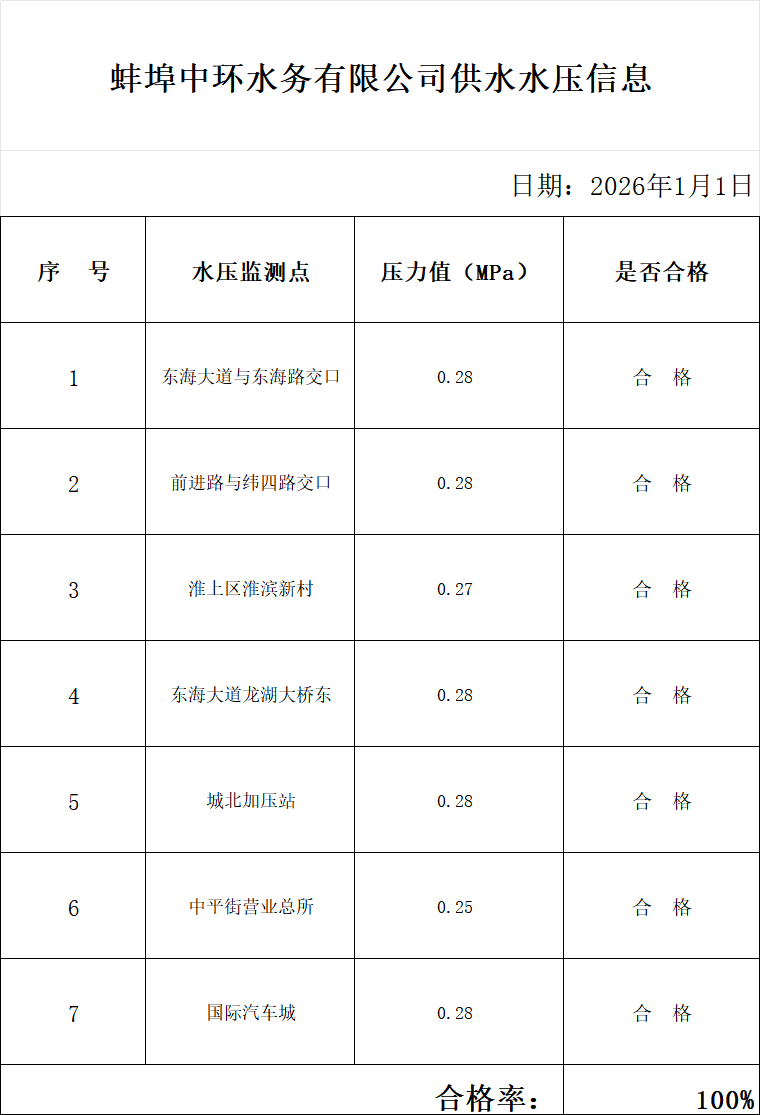 2026年1月1日水壓信息