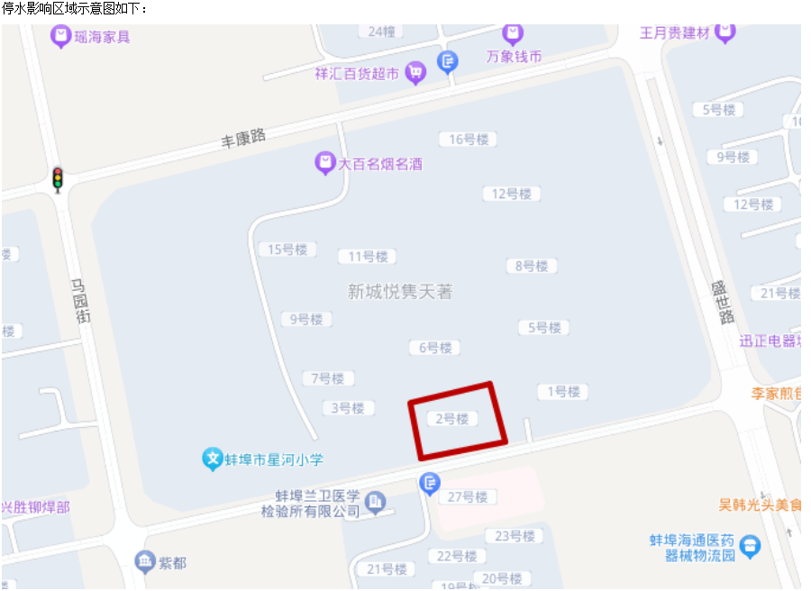 停水區(qū)域:悅雋天著2號樓