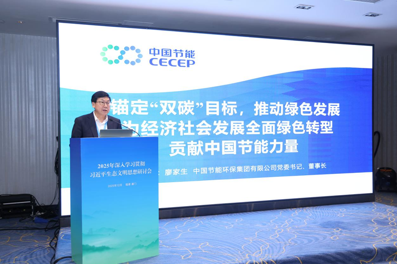 12月1日,2025年深入學習貫徹習近平生態(tài)文明思想研討會在廈門舉辦。生態(tài)環(huán)境部黨組書記孫金龍,福建省委書記、省人大常委會主任周祖翼出席主論壇并講話。福建省委副書記、省長趙龍出席主論壇并致辭。生態(tài)環(huán)境部黨組成員、副部長于會文主持研討會主論壇。集團公司黨委書記、董事長廖家生應邀出席會議,并以“錨定雙碳目標 推動綠色發(fā)展 為經(jīng)濟社會發(fā)展全面綠色轉型貢獻中國節(jié)能力量”為題在平行分論壇發(fā)言。